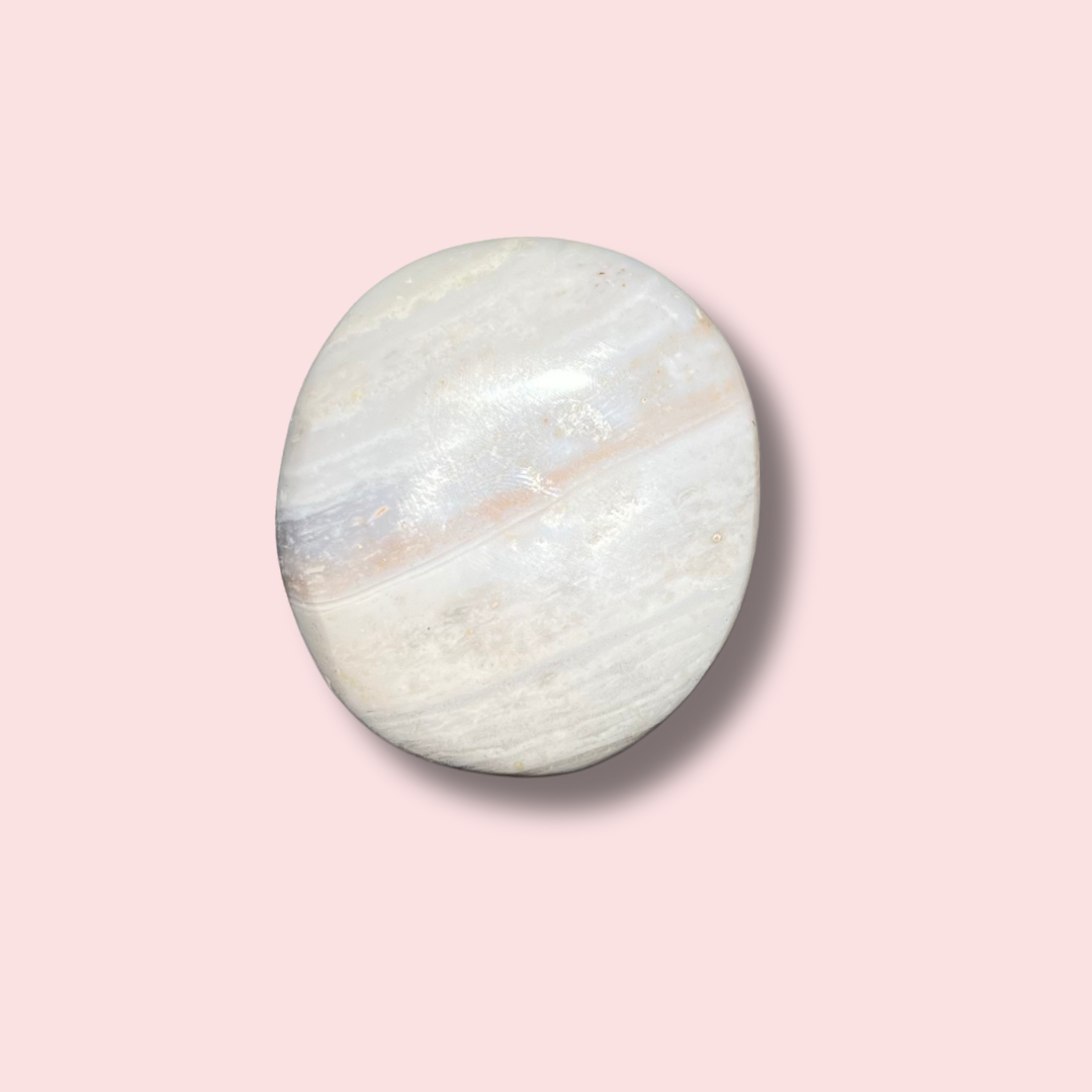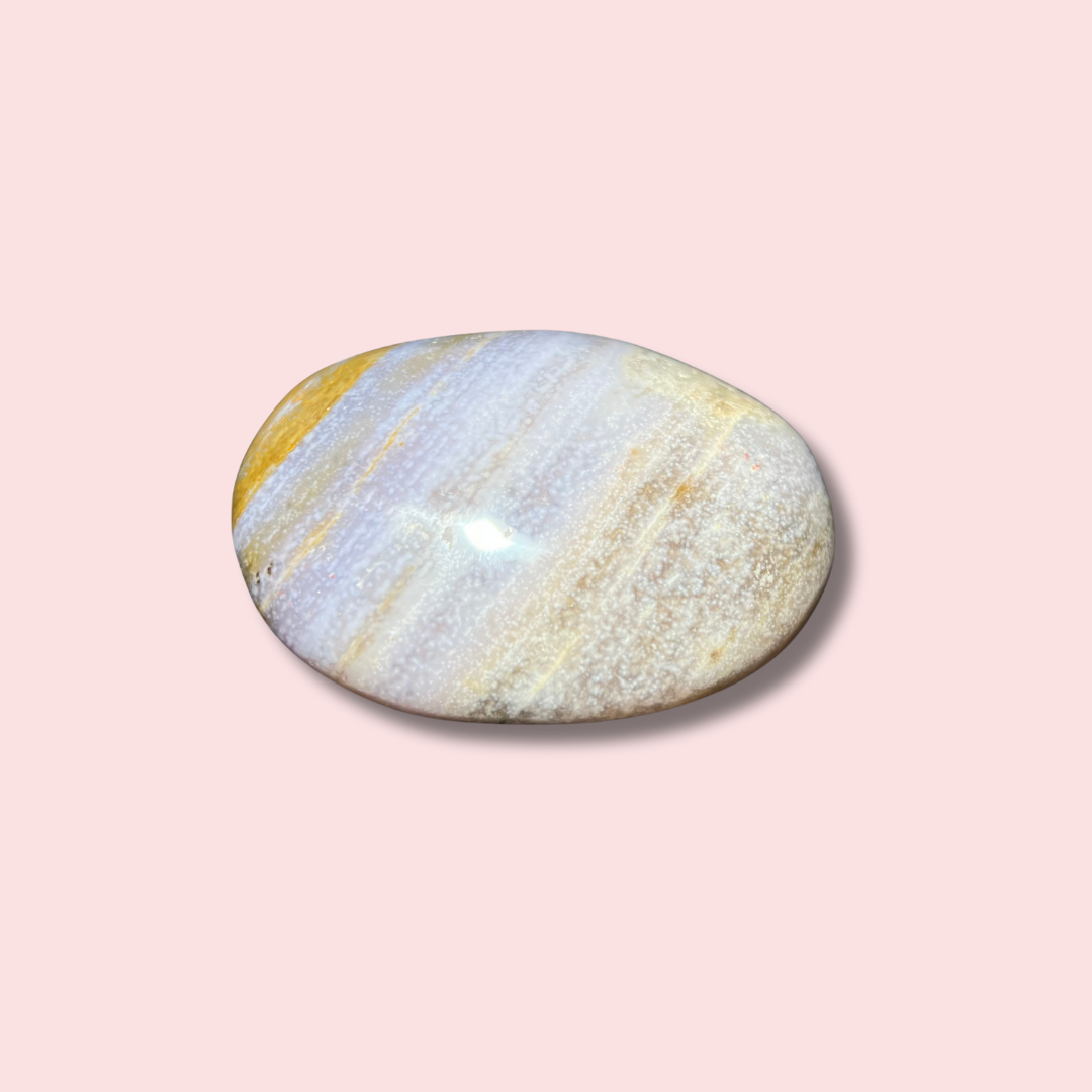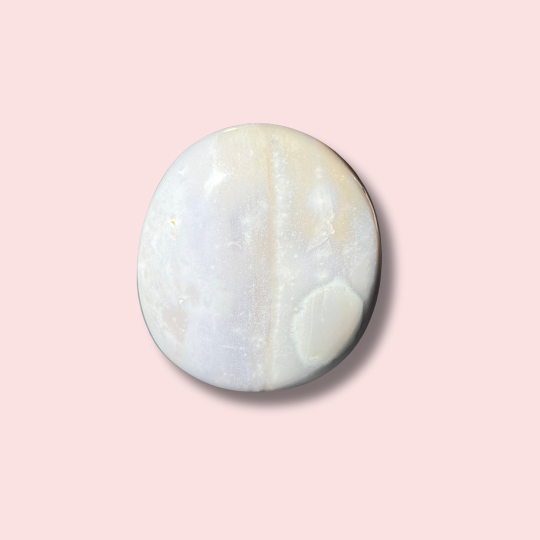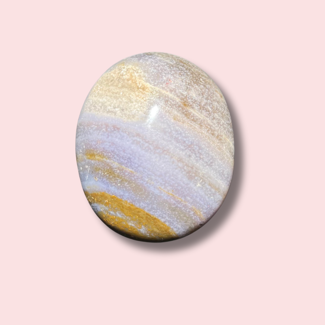 Periwinkle Blue Sea Jasper Palm Stone With Hints of Pink