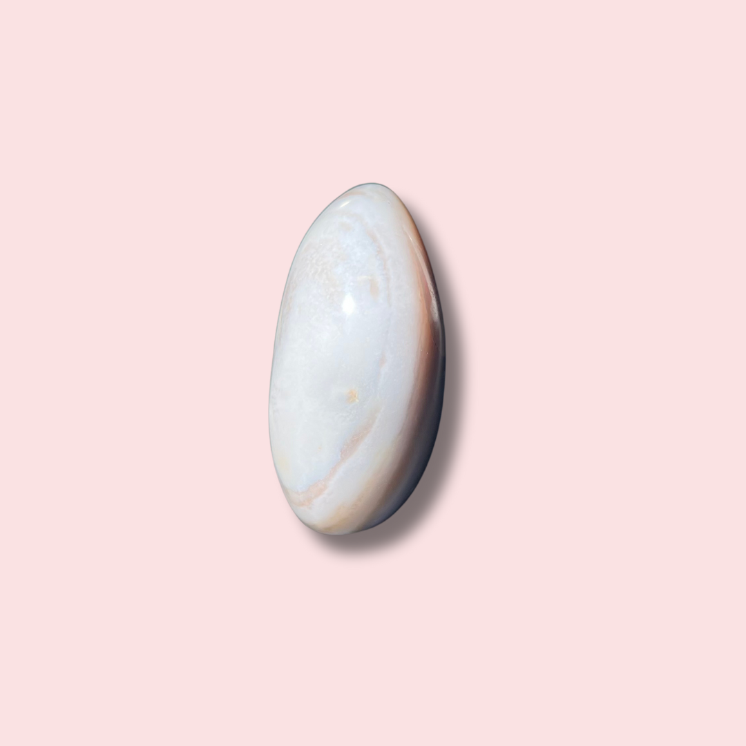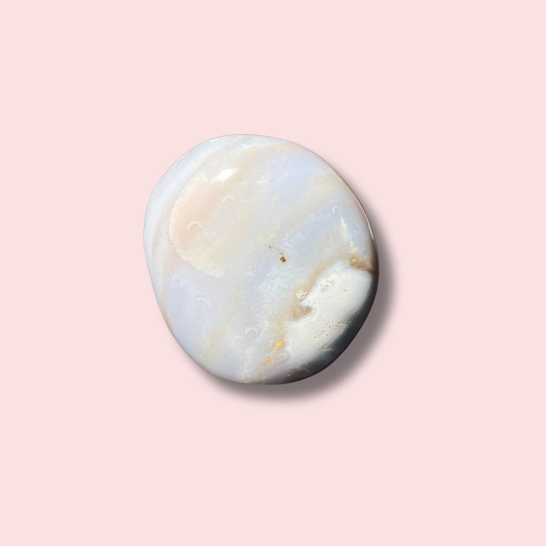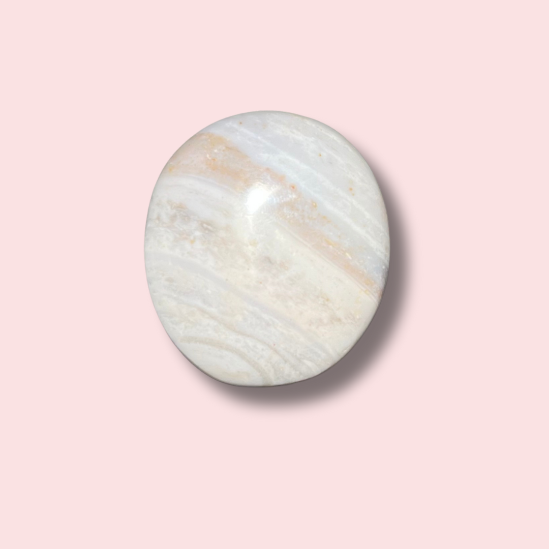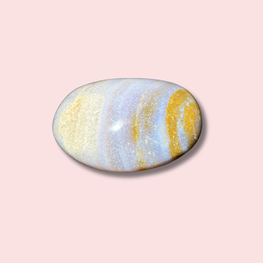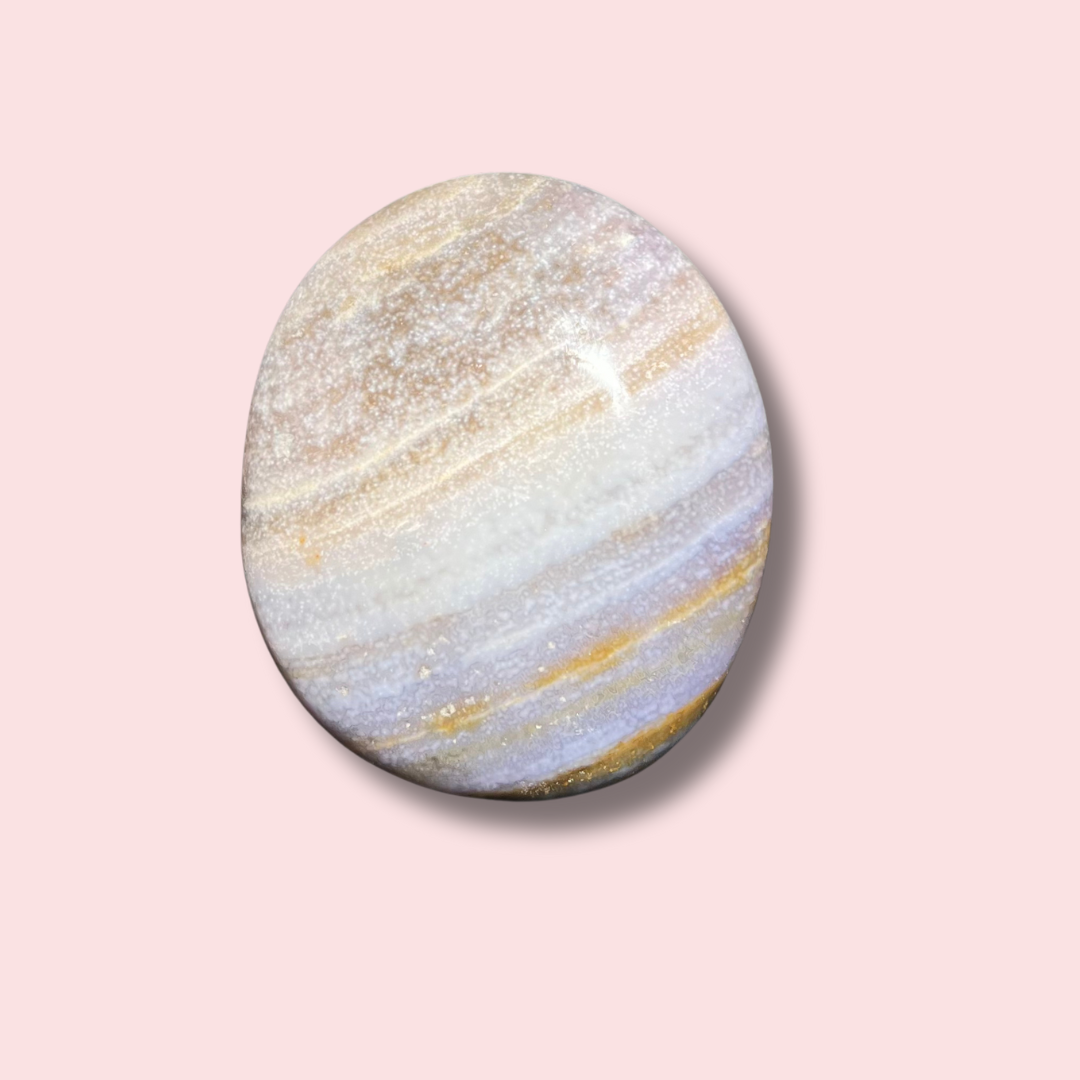 Periwinkle Blue Sea Jasper Palm Stone With Hints of Pink