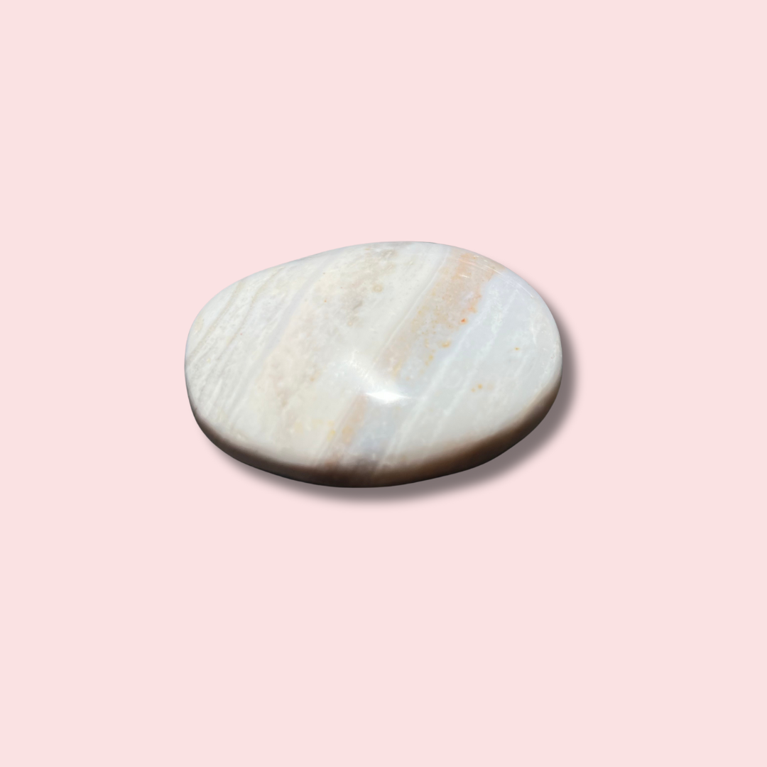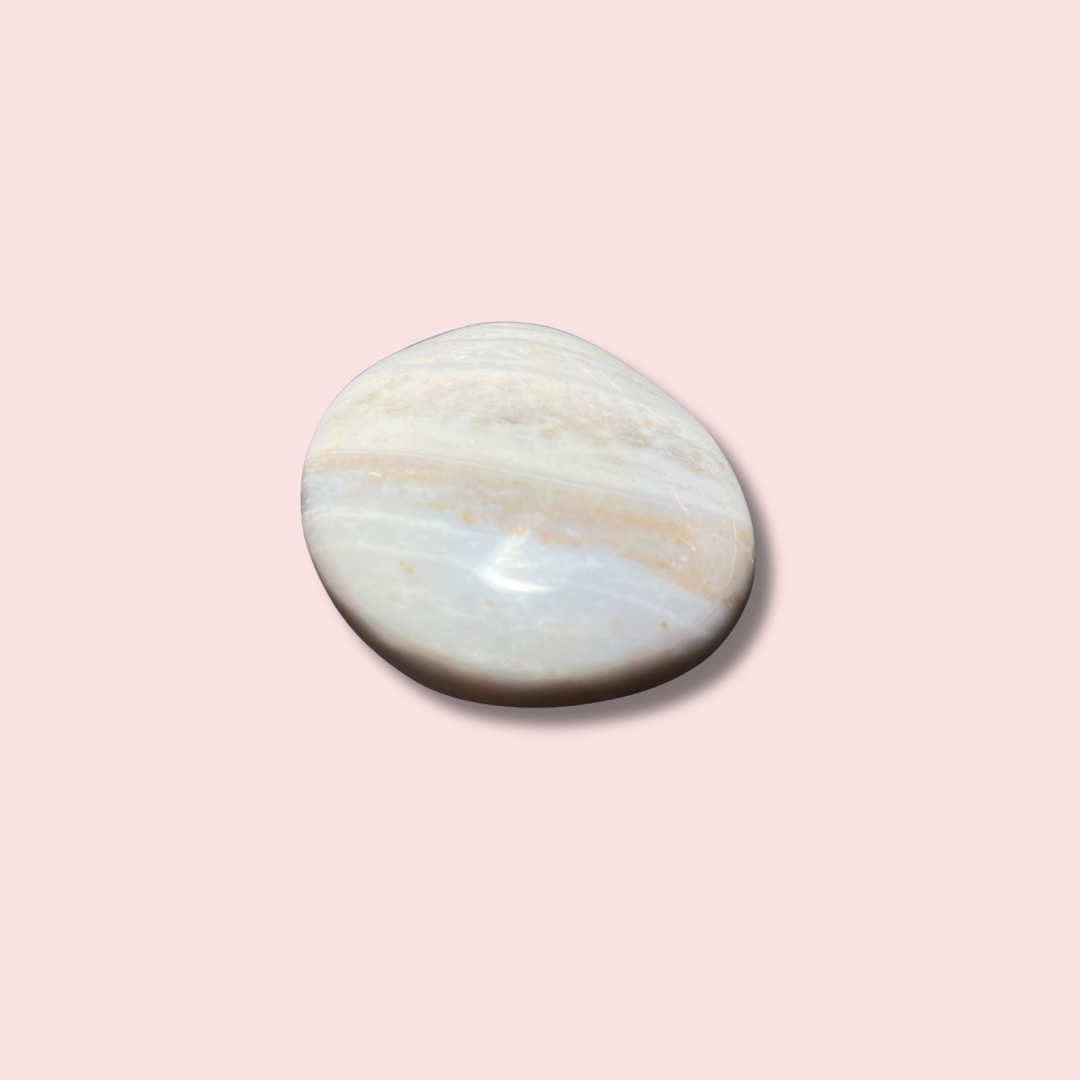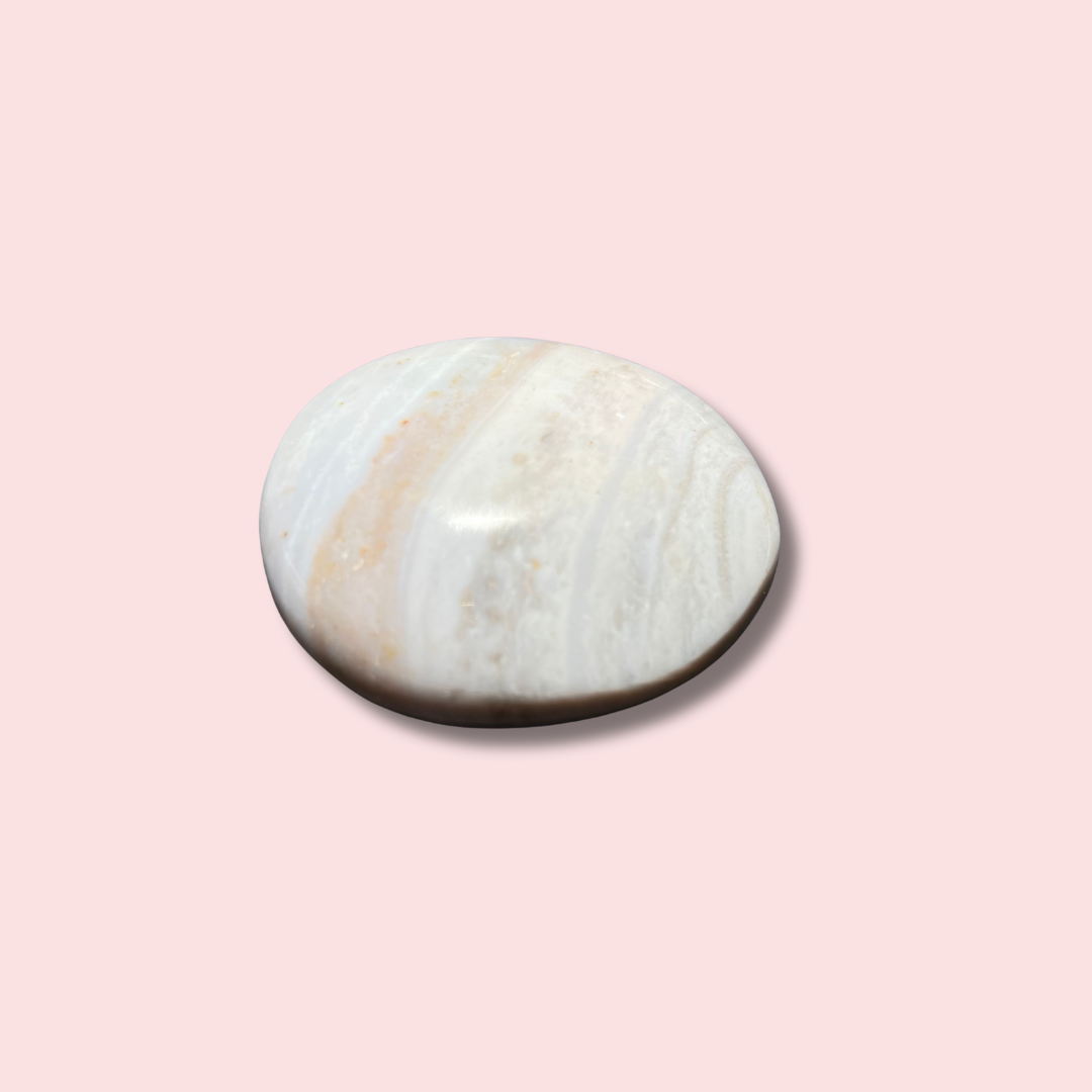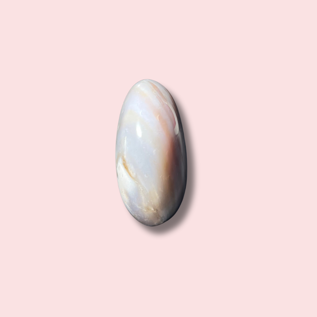Periwinkle Blue Sea Jasper Palm Stone With Hints of Pink
