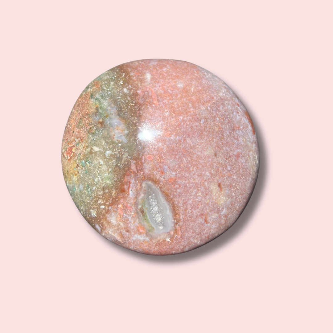 Stunning Pink Orbicular Sea Jasper Palm Stone