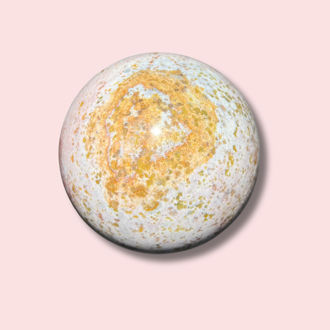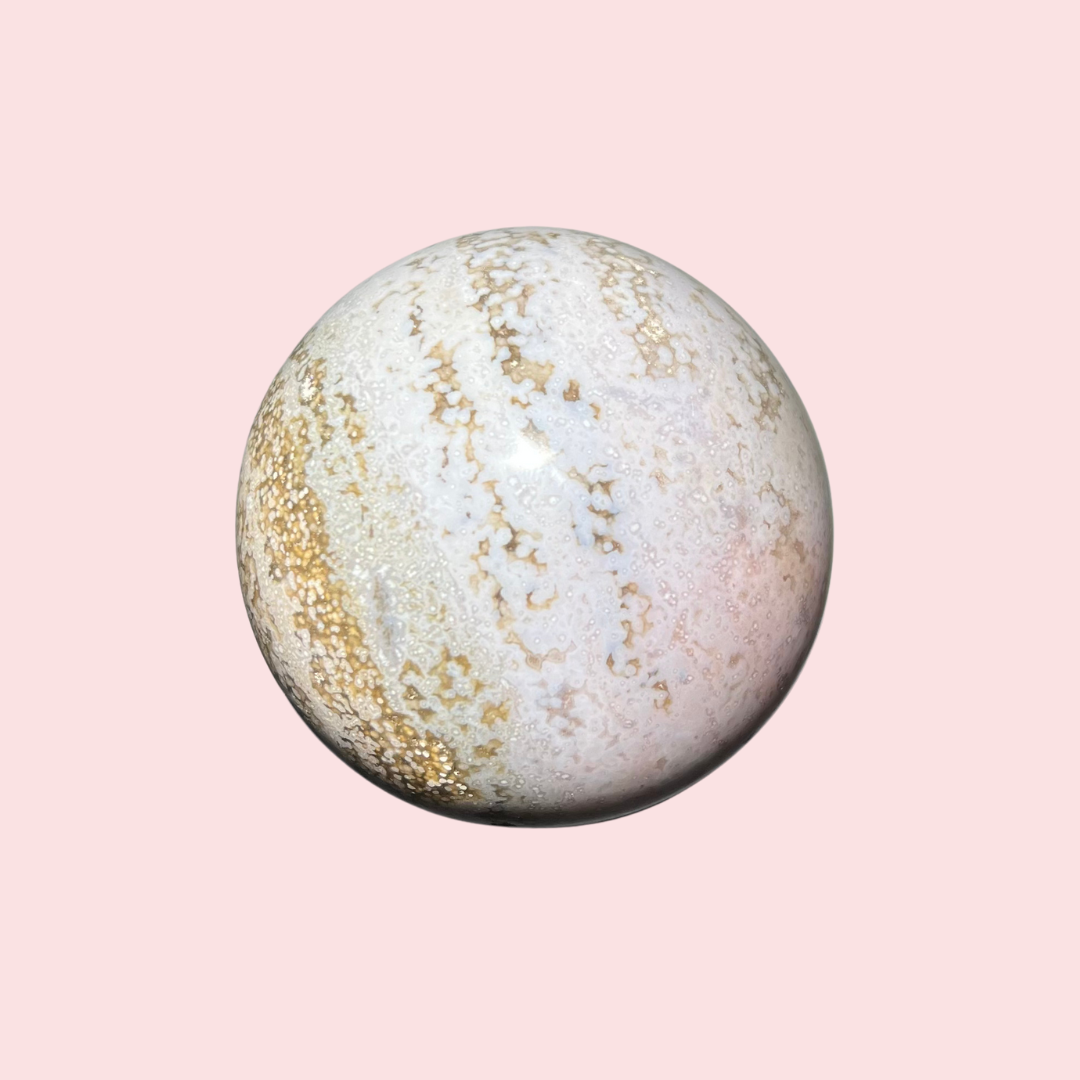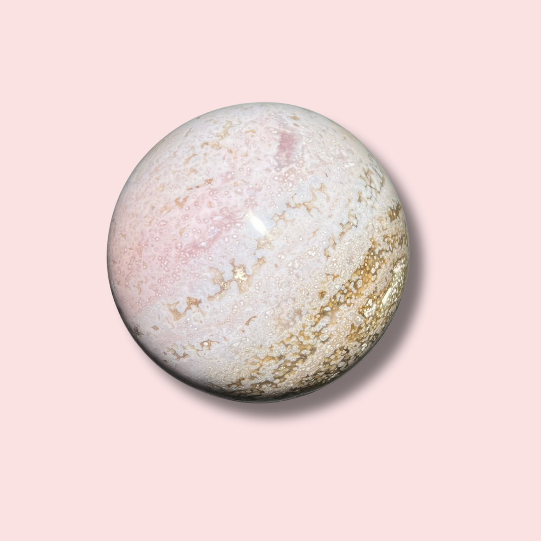 Pastel Orbicular Sea Jasper Sphere With Hints of Pink