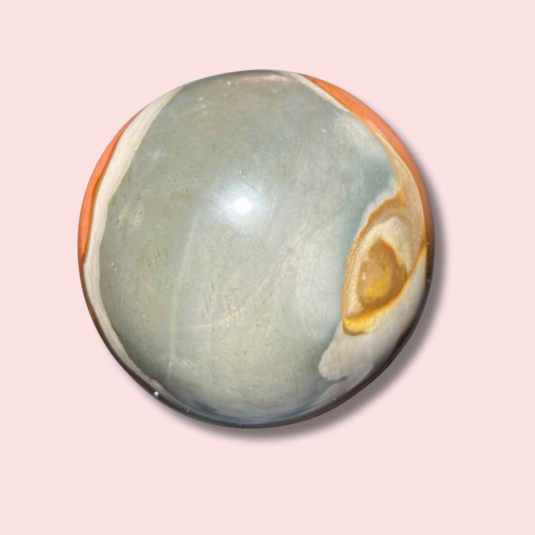 Rare XL Peachy Pink Polychrome Jasper Sphere (4+ lbs)