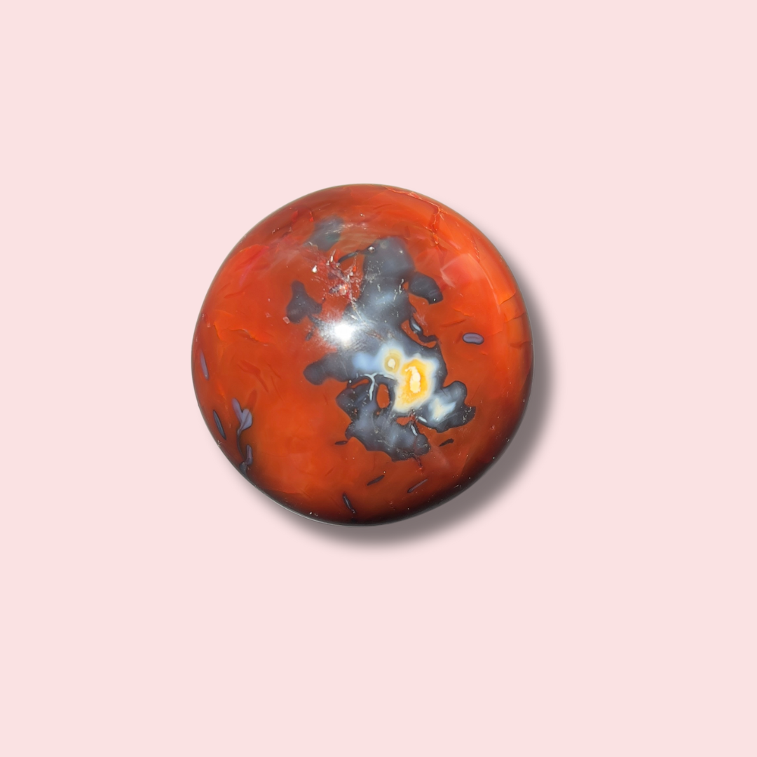 Caramel Carnelian x Orca Agate Sphere With Druzy Cave