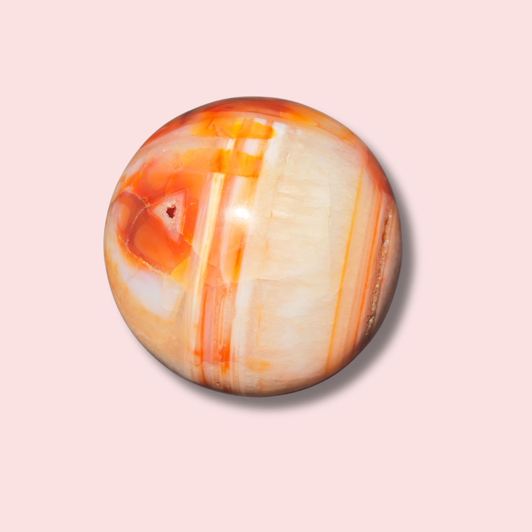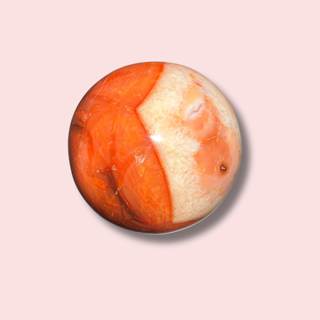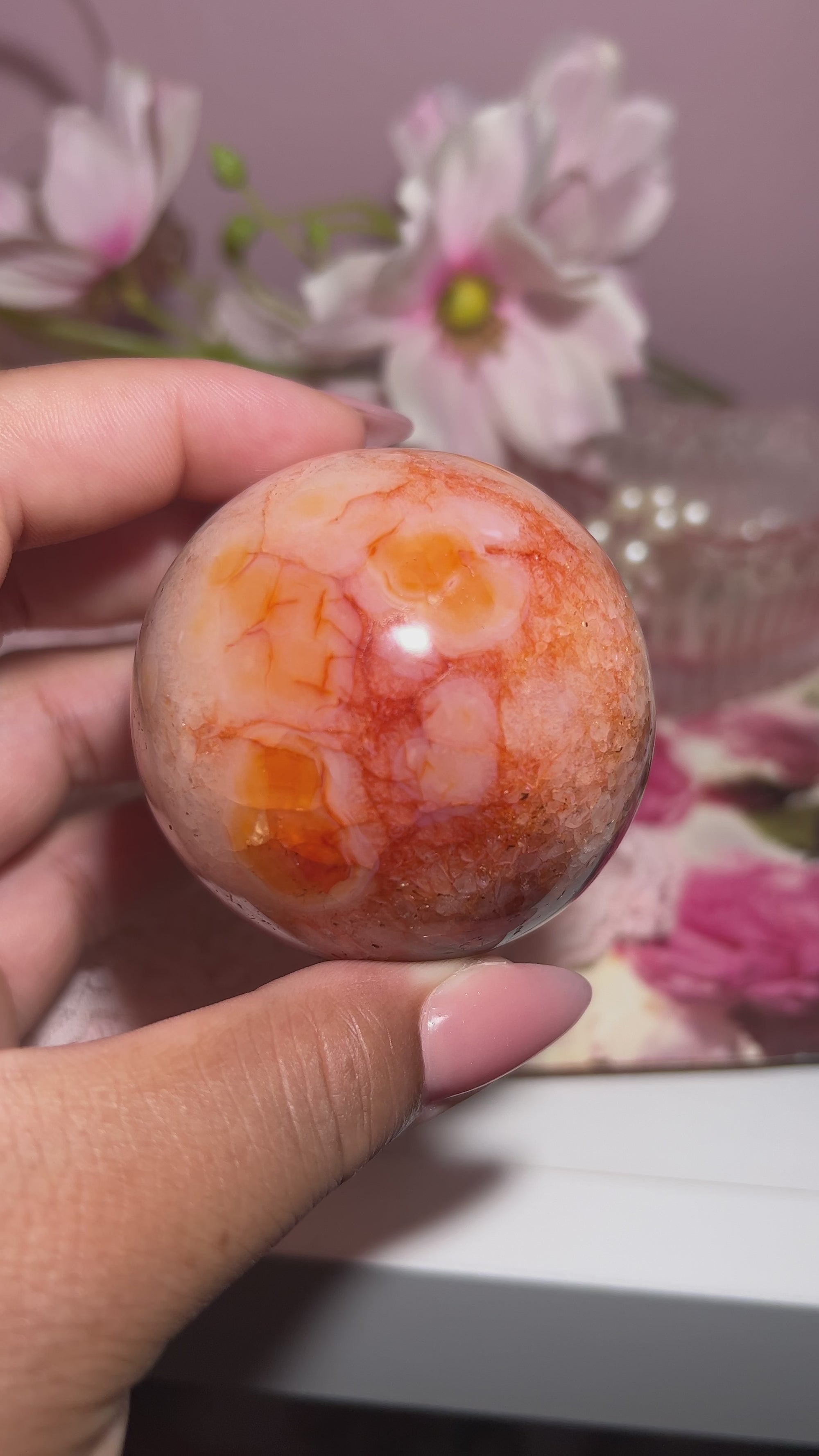 Stunning Peachy Quartz Filled Carnelian Sphere