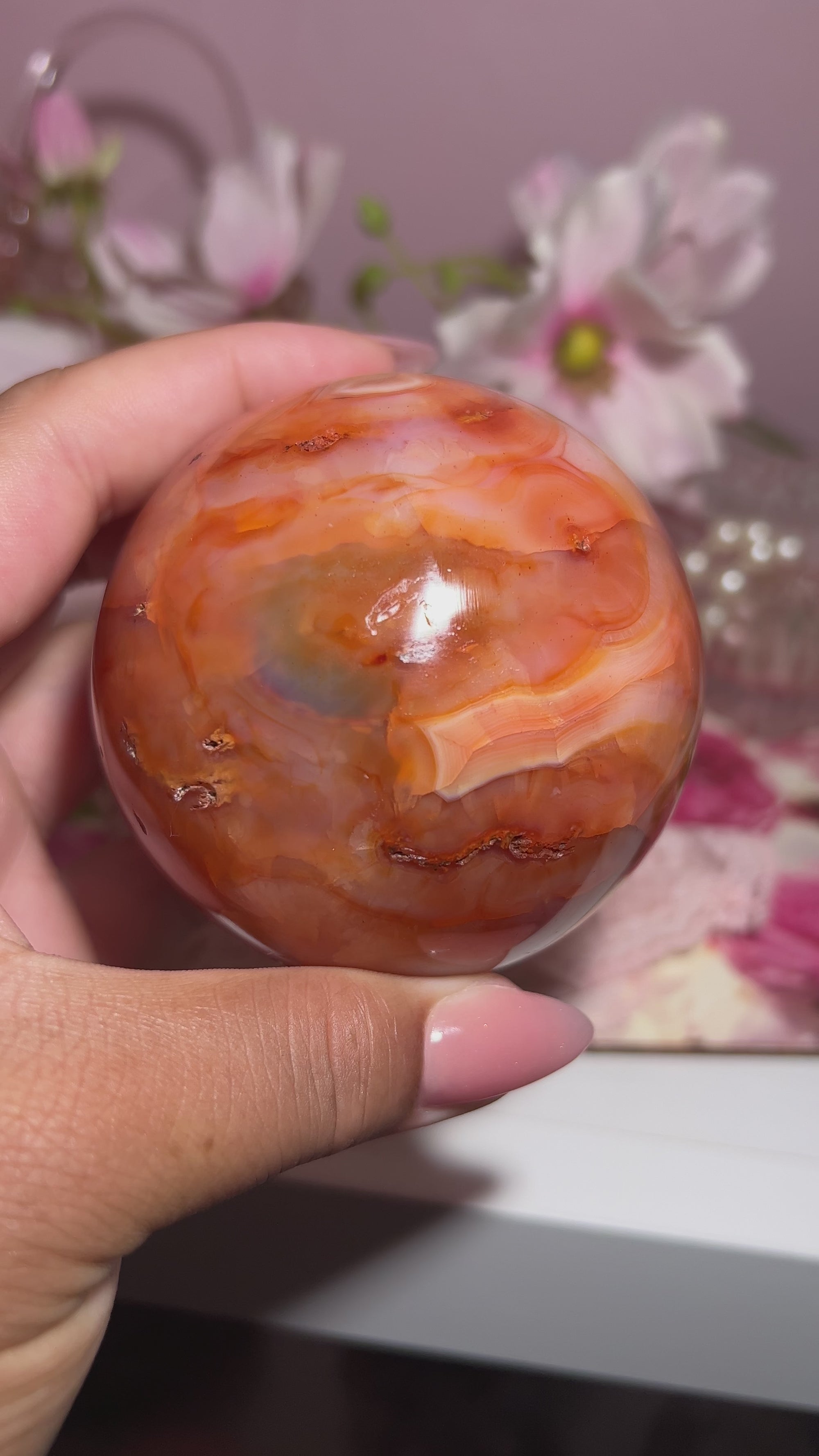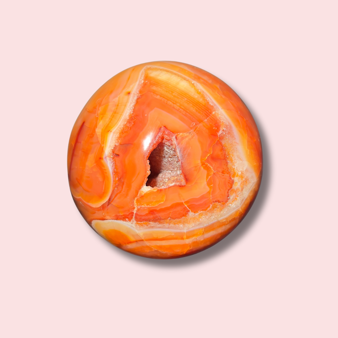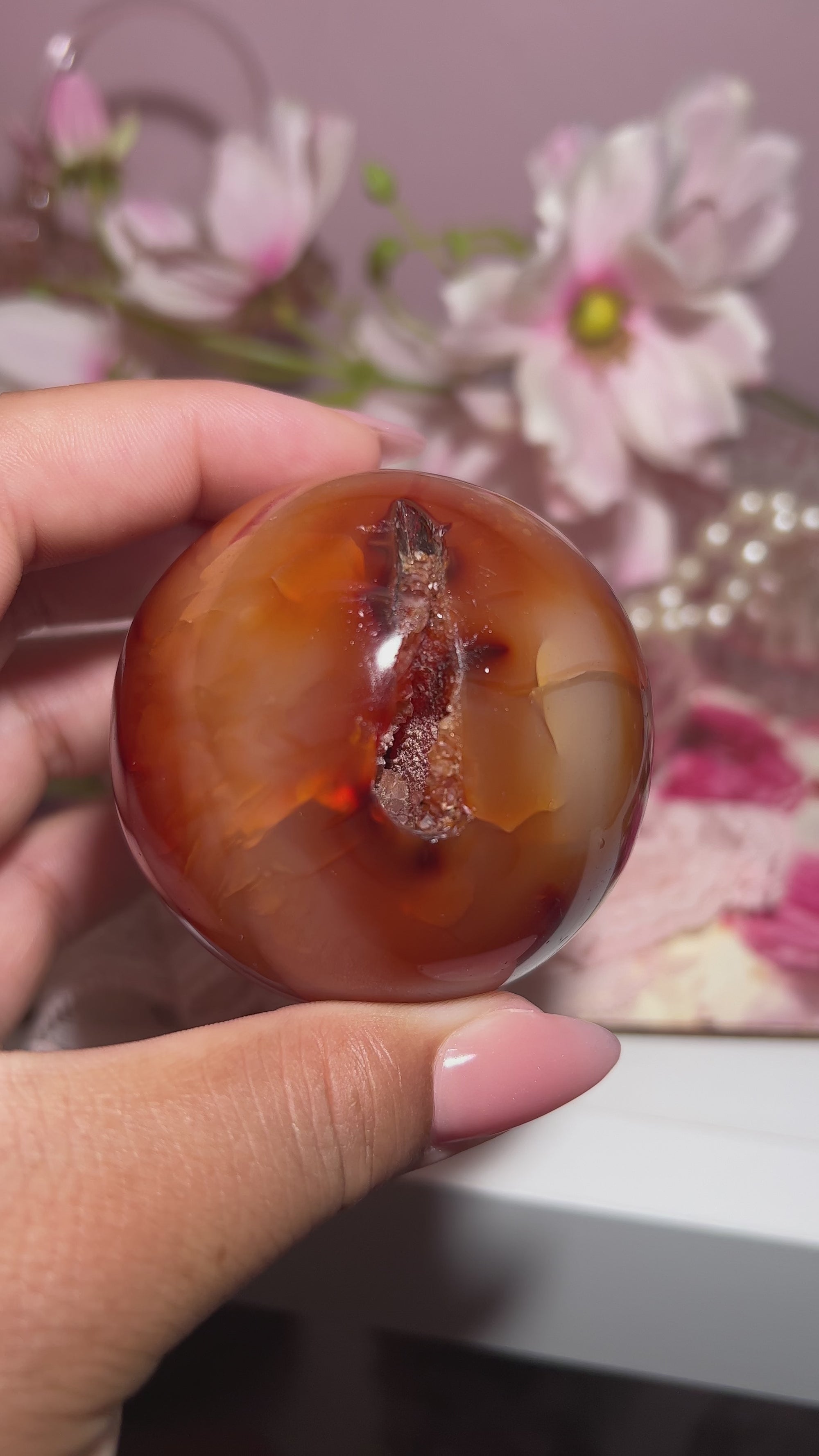 Stunning Peachy Quartz Filled Carnelian Sphere