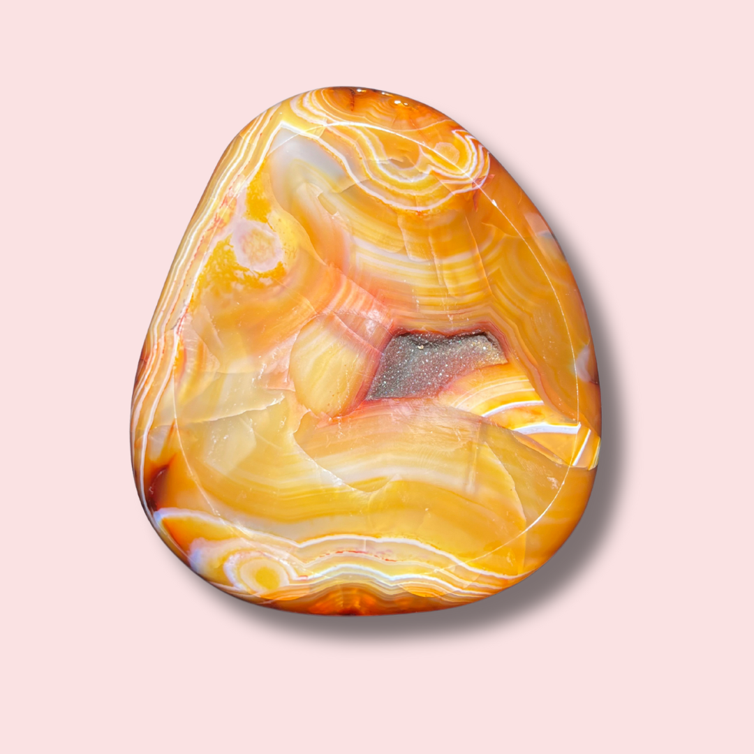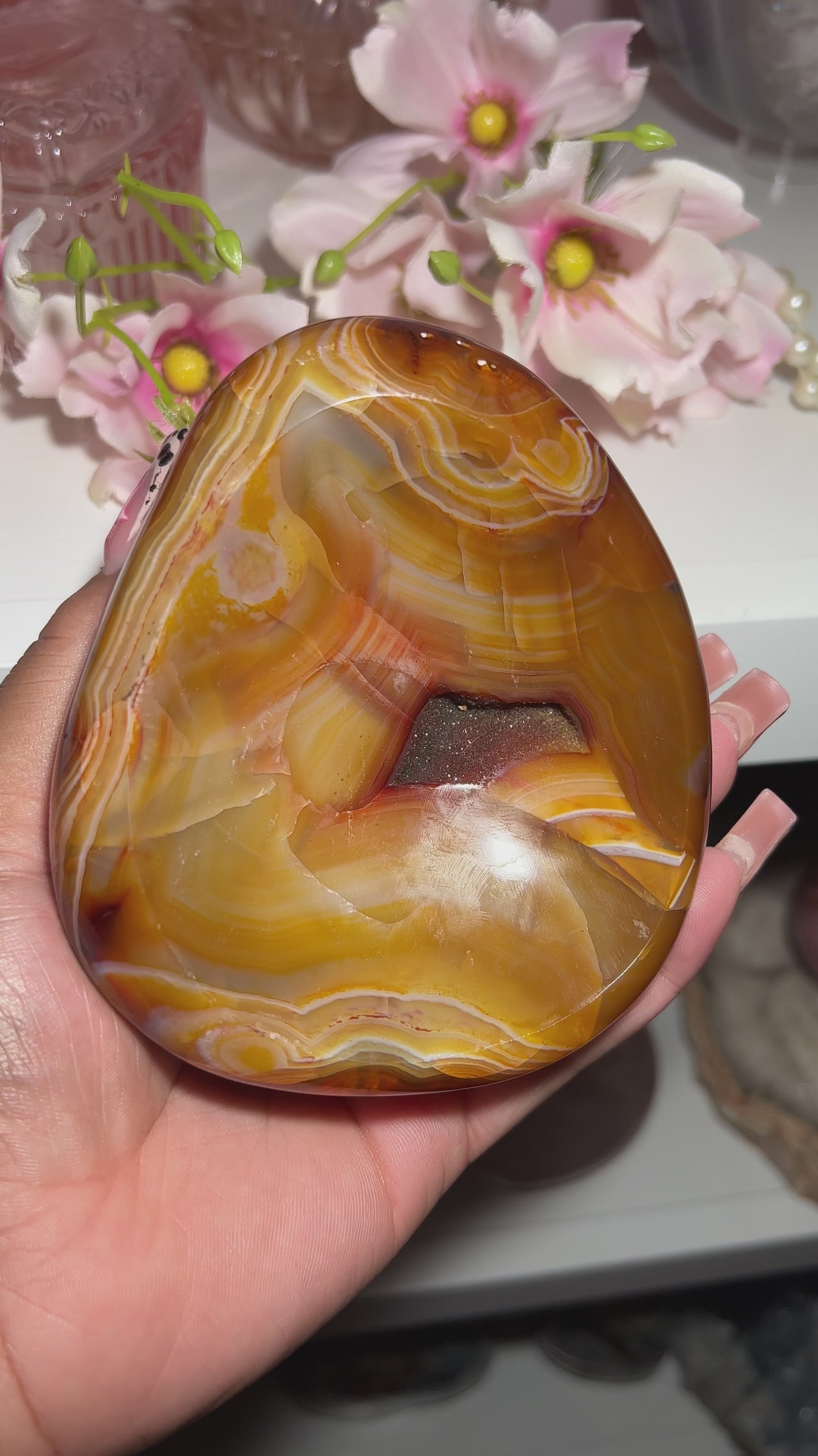 Funky Yellow Carnelian Bowl With Druzy & Crazy Banding