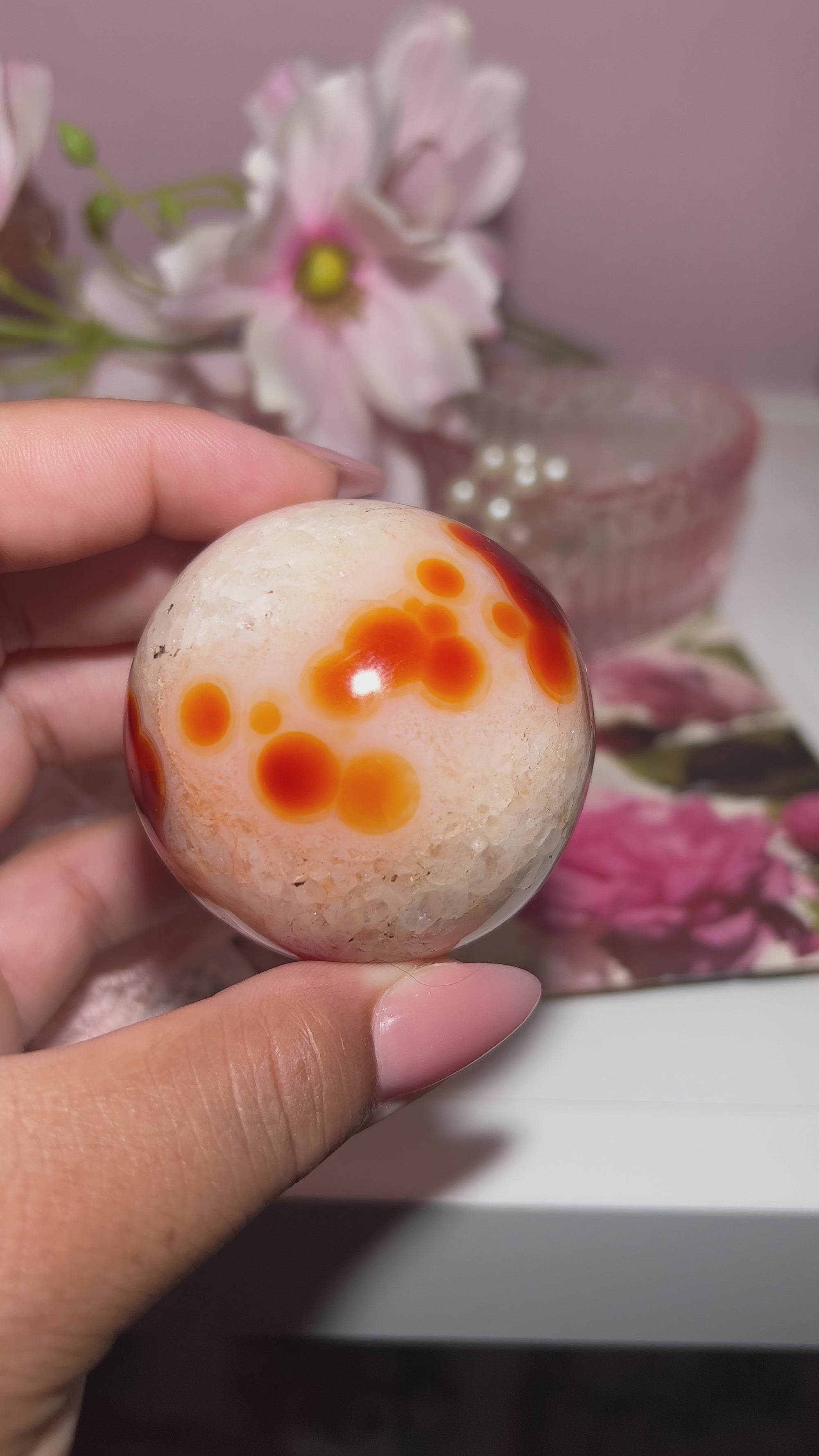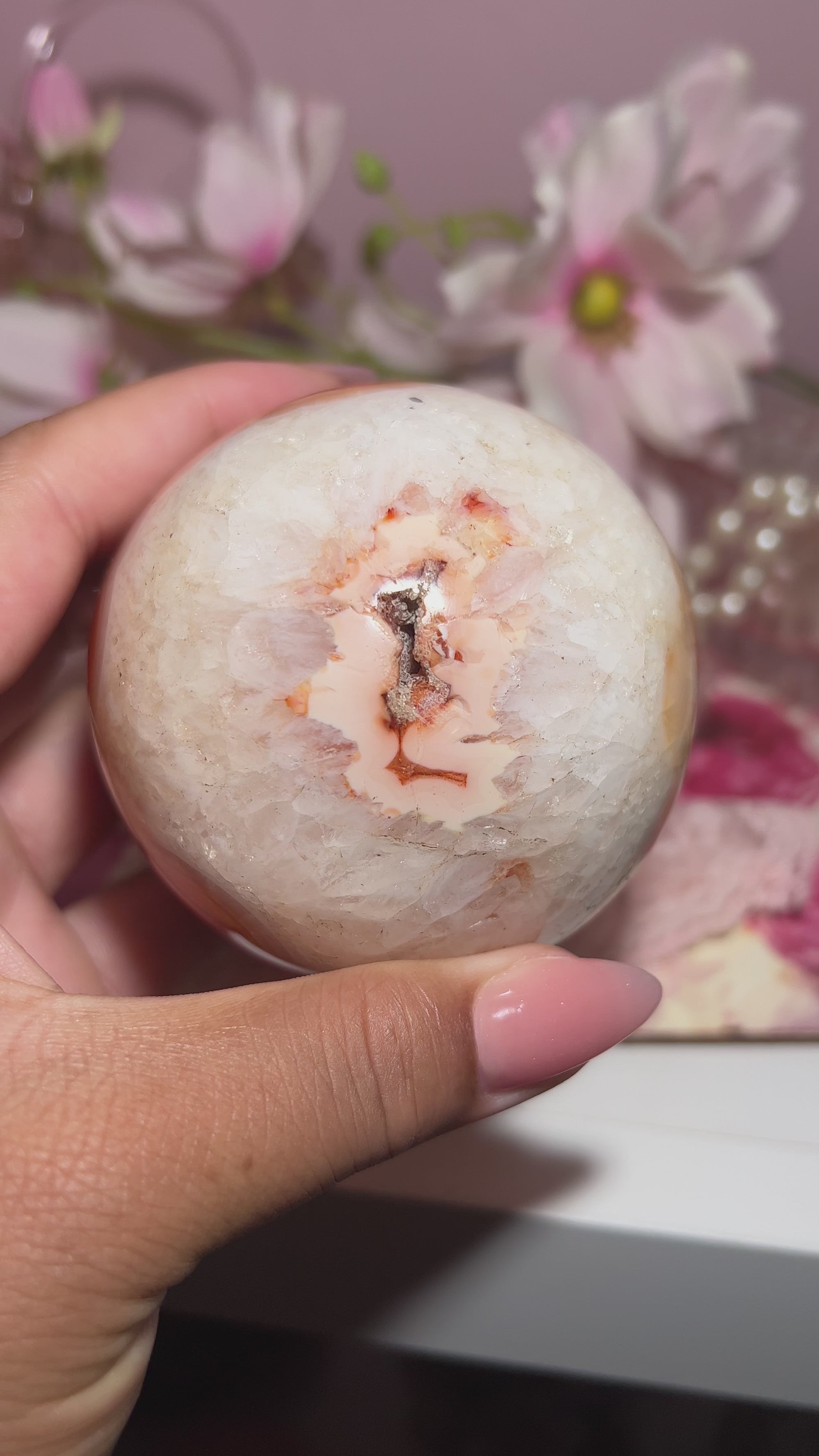 Light Pink Amethyst x Flower Agate Sphere With Carnelian
