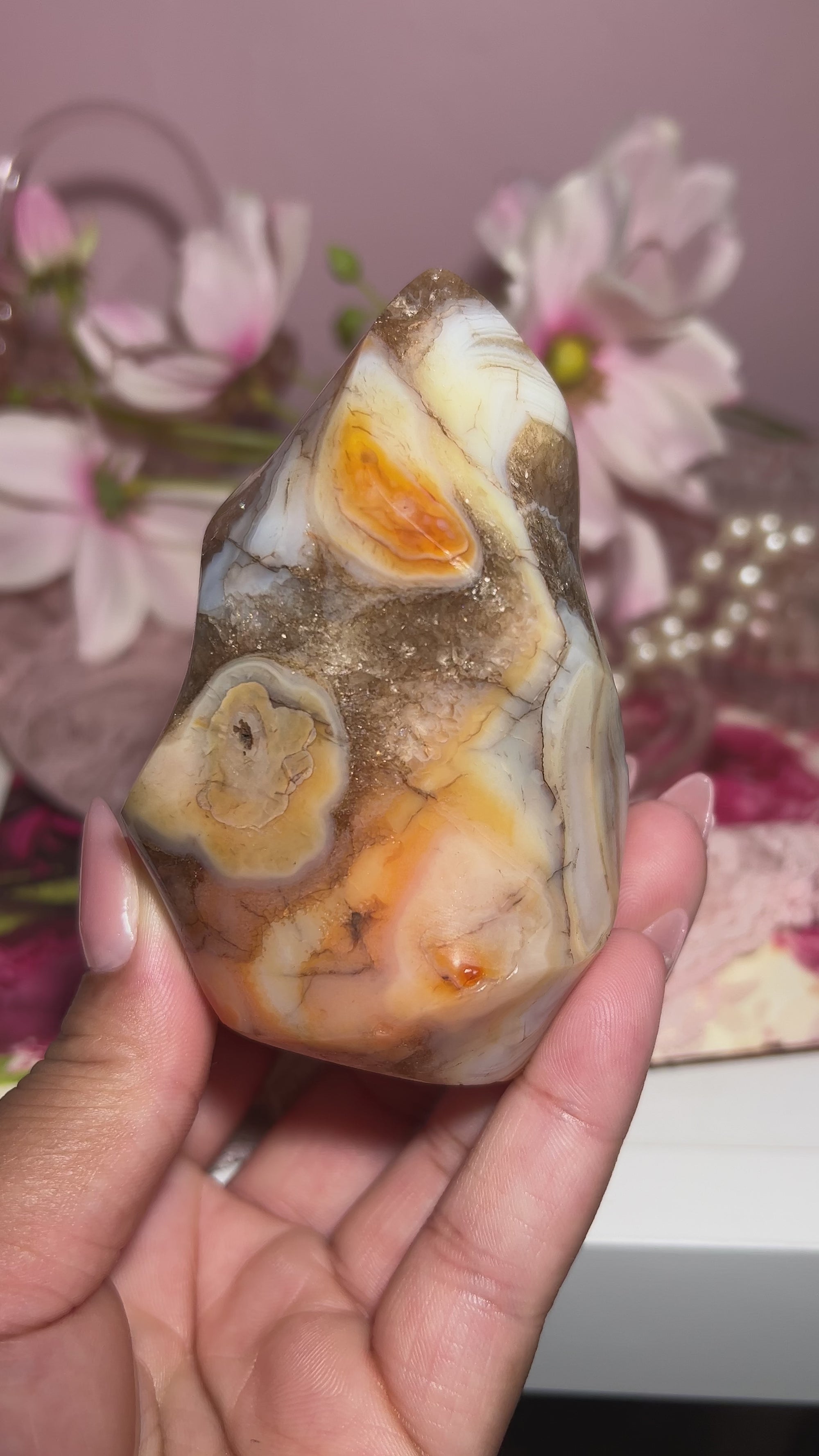 Unique Purple Amethyst x Flower Agate x Carnelian Flame